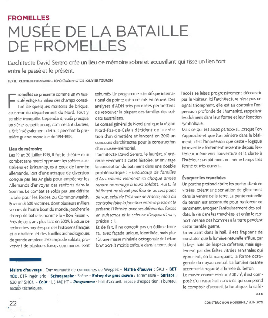 Musée de la bataille de Fromelles Posted by admintommasini on 23 décembre 2015 Construction Moderne – Juin 2015